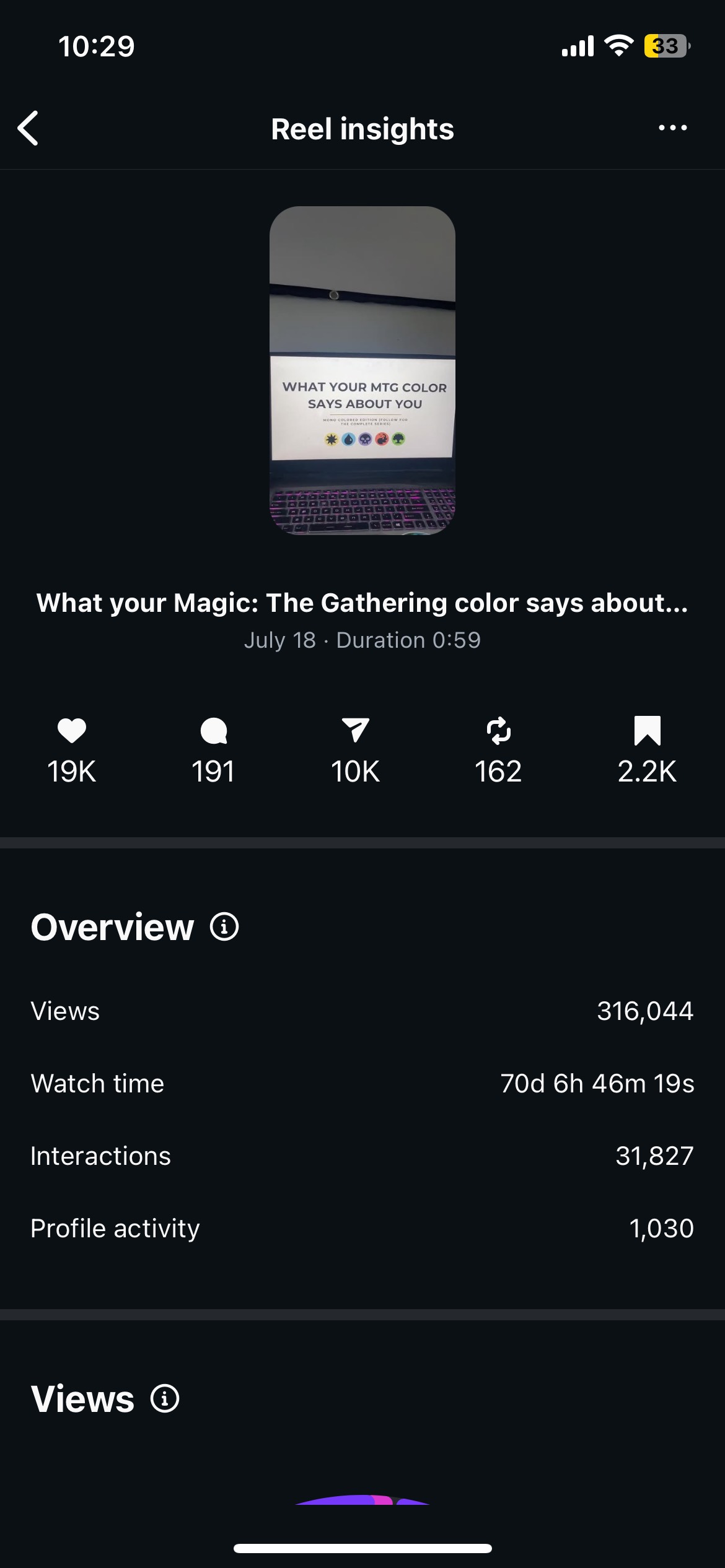 This is a personal project I launched four months ago, creating content for a popular trading card game. I noticed an opening in the niche and positioned myself to fill it by blending trend-driven content with the culture of the hobby. Since then, the account has experienced rapid growth, averaging nearly 2 million monthly views across TikTok and Instagram and surpassing 5 million total views. I continue to scale the project by steering mainstream trends into this community.